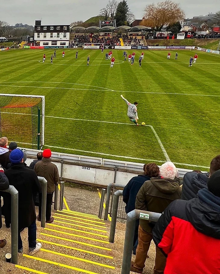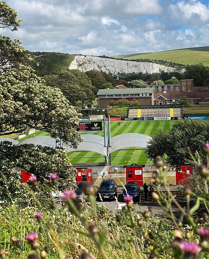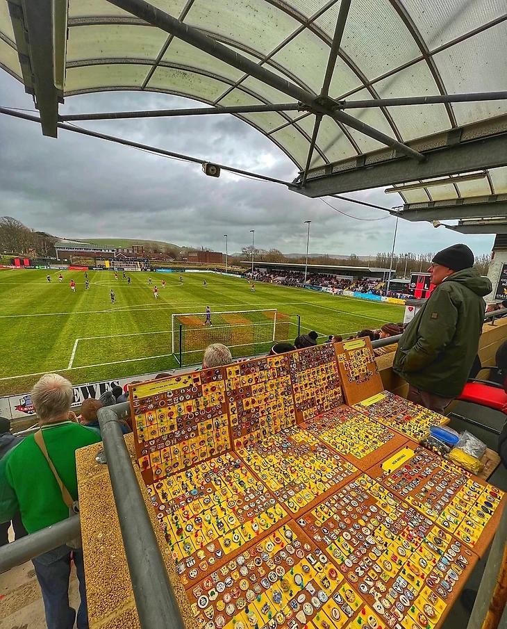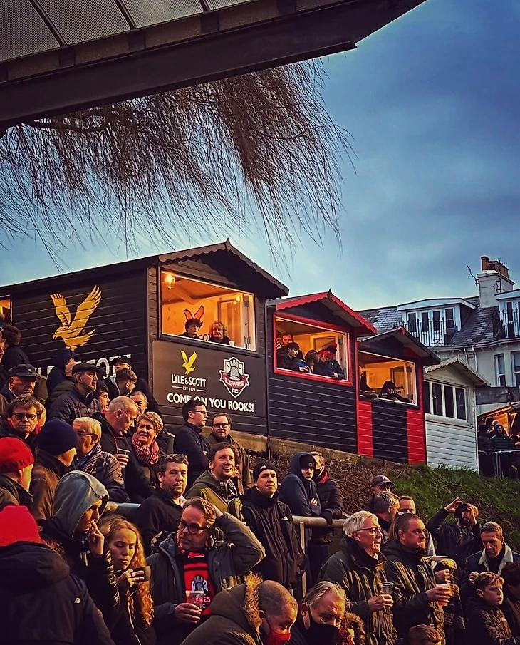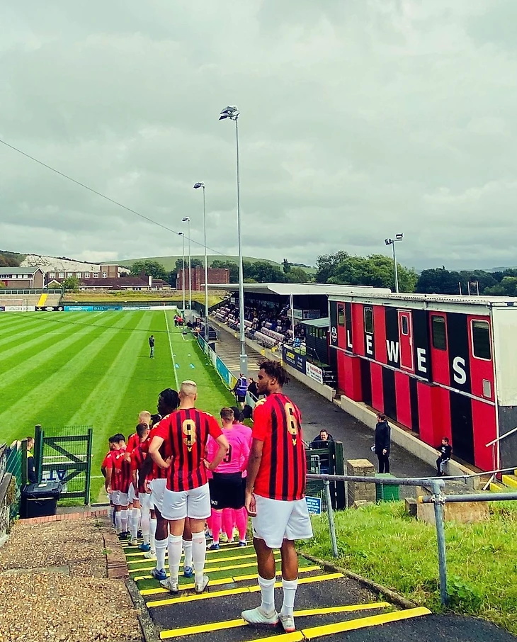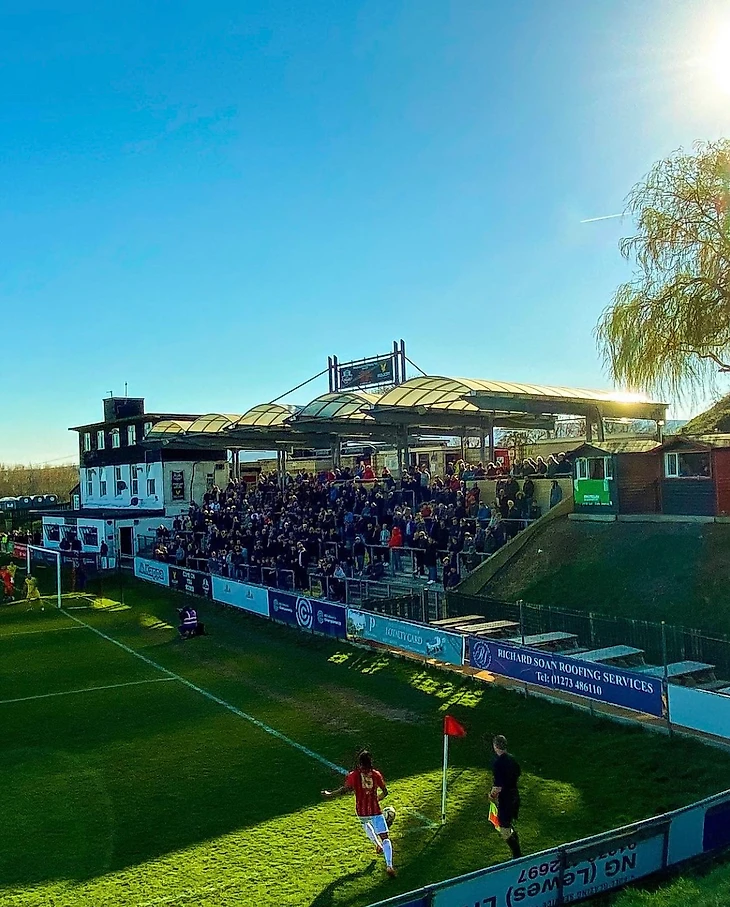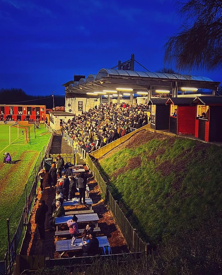 Фан-культура в Льюисе, без туристов и случайно залетевших нефутбольных людей, именно такая, какая бывает только в английской футбольной провинции (в хорошем смысле слова). Фаны заряжают на протяжении всего матча, даже лысоватые деды, вскакивают на ноги прямо перед вами и хватаются за голову – аутентичнее быть не может. Отдельное уважение за детали – именную полочку под пивас и стойку со значками и архивными программками для коллекционеров.