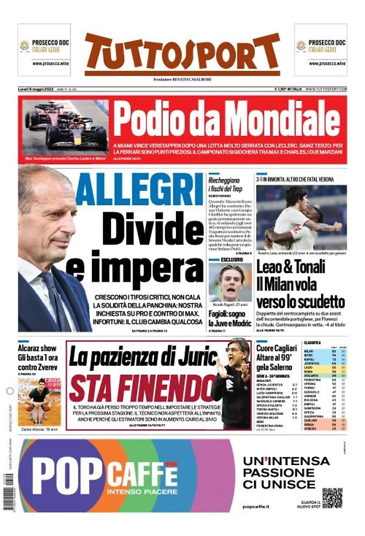 «Милан» выиграл в Вероне (3:1) и за 180 минут до конца вернулся к 2 очкам преимущества над «Интером». Пиоли вернулся на вершину благодаря Леау-Тонали: уже в воскресенье могут праздновать. Фараони подарил ложную надежду Тудору, затем на сцену вышли двое молодых талантов. Тренер: влюблён в моих игроков». Следующий тур: Дьявол против Гаспа, Нерадзурри в Кальяри.