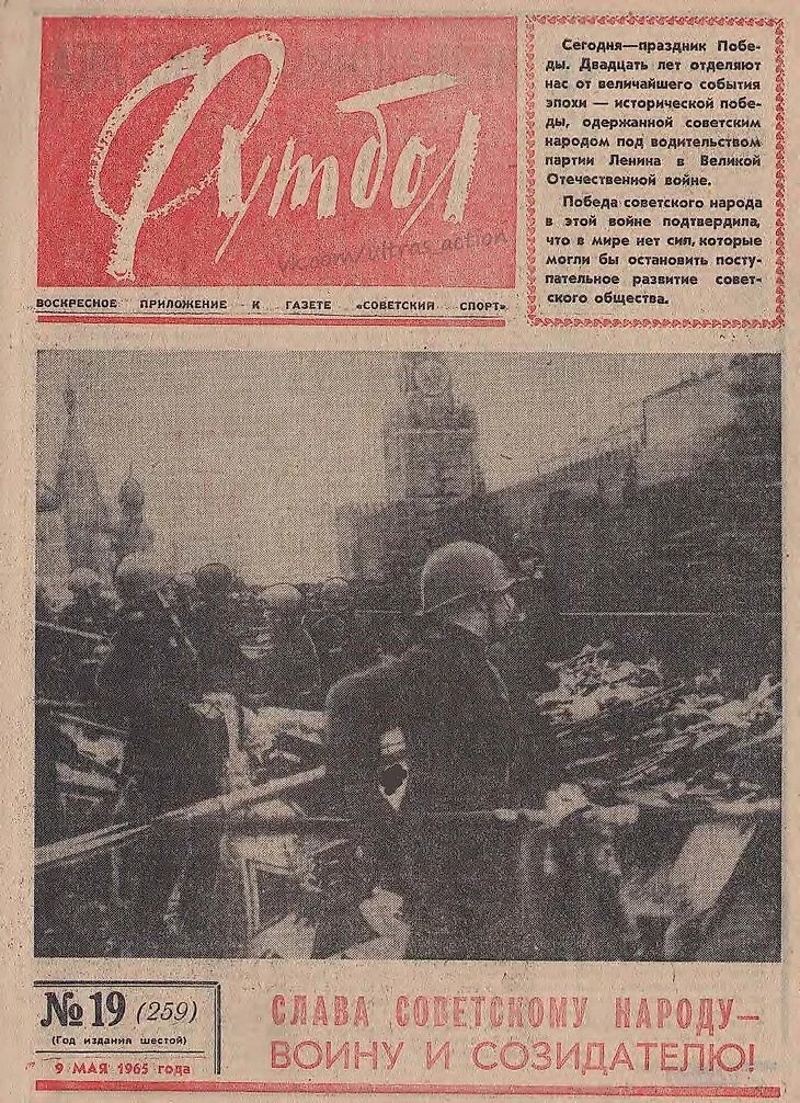 Именно в 1965-м 9 мая объявили нерабочим днем и всенародным праздником, поэтому читатели «Футбола» получать поздравления стали ежегодно.