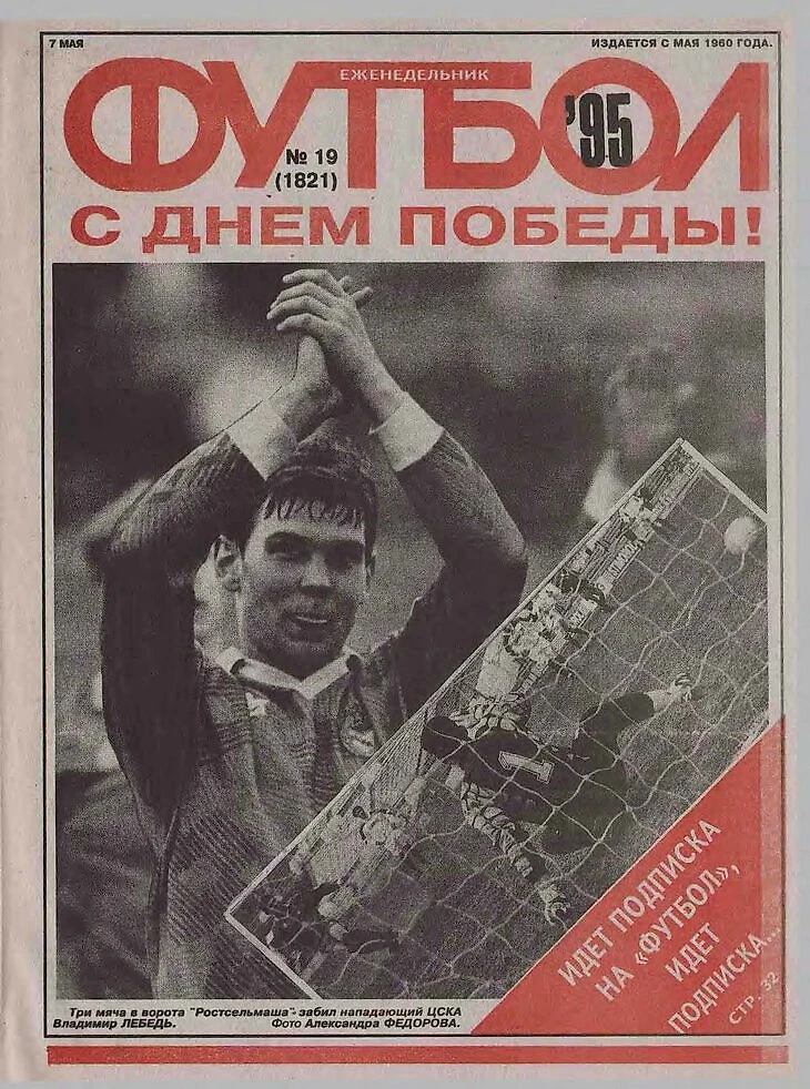 А это последнее упоминание 9 мая на обложке легендарного журнала. И последний хет-трик в карьере Владимира Лебедя.