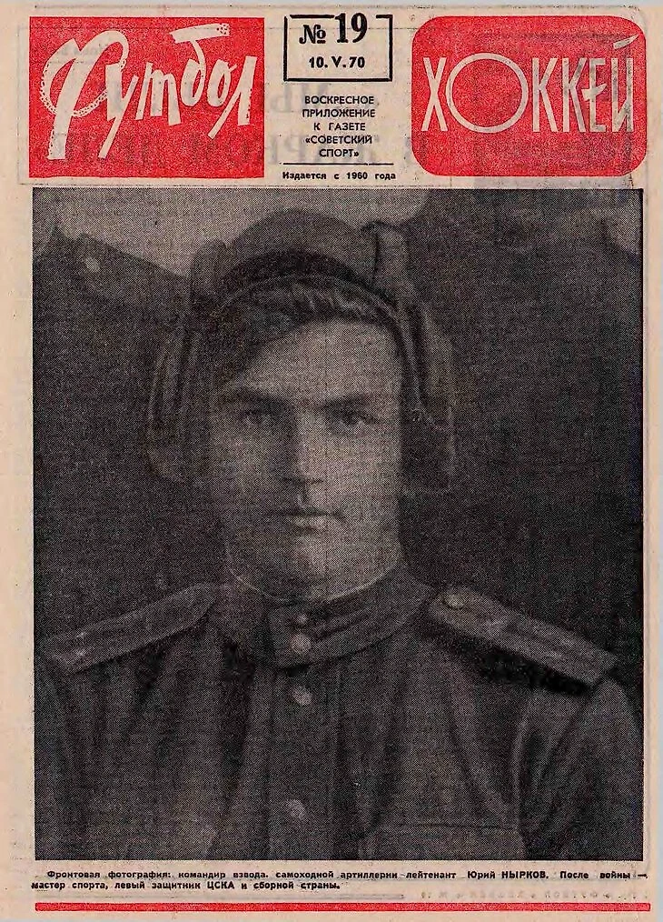 Номер от 10 мая 1970 года. На обложке – фронтовая фотография защитника ЦСКА и сборной СССР Юрия Ныркова, участвовавшего во взятии Берлина. После завершения игровой карьеры член знаменитой команды лейтенантов вернулся на службу, с которой ушел на пенсию в звании генерал-майора.