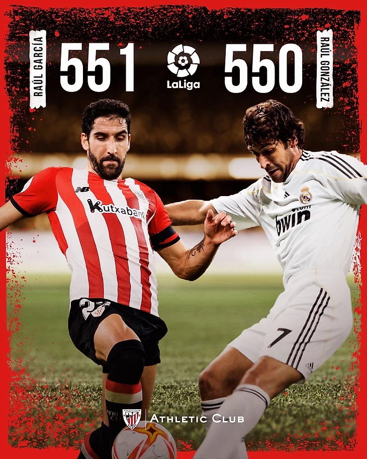 Тем временем Рауль Гарсия обошел Рауля по количеству матчей в ла-Лиге.