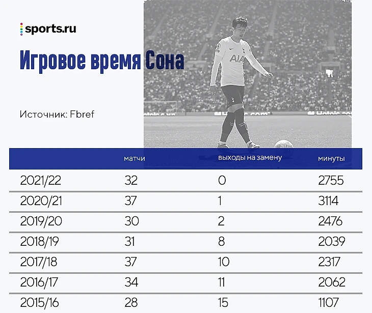 Резкое изменение случилось в последние три года. С сезона-2019/20 Сон в 99 матчах только трижды выходил на замены, а в этом чемпионате начинает в старте все матчи, когда доступен. Рост результативности произошел на фоне увеличения игрового времени, но это взаимосвязанные факторы.