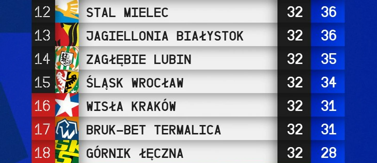 За два тура до конца еще никто официально не покинул Экстракласу. Даже «Гурник» теоретически может покинуть зону вылета в случае двух крупных побед, двух крупных поражений «Шлёнска», а также нужных результатов в матчах с участием «Вислы» и «Термалики». Шансов на сохранение места в элите у «Гурника» практически нет, но многие пророчили «зелено-черным» вылет еще в туре 30-ом.