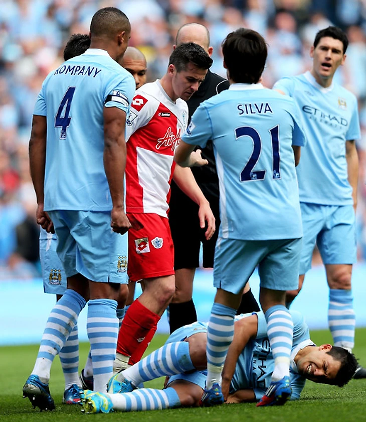 Затем КПР остался в меньшинстве. Джои Бартон получил красную за опасную игру локтем. А затем ещё и пнул сзади Серхио Агуэро. Мягко говоря, некрасивый поступок.