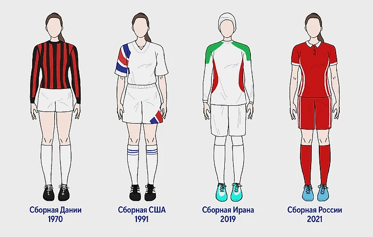 От шаровар, мужских ботинок и беретов до уникального дизайна. Как менялась форма в женском футболе