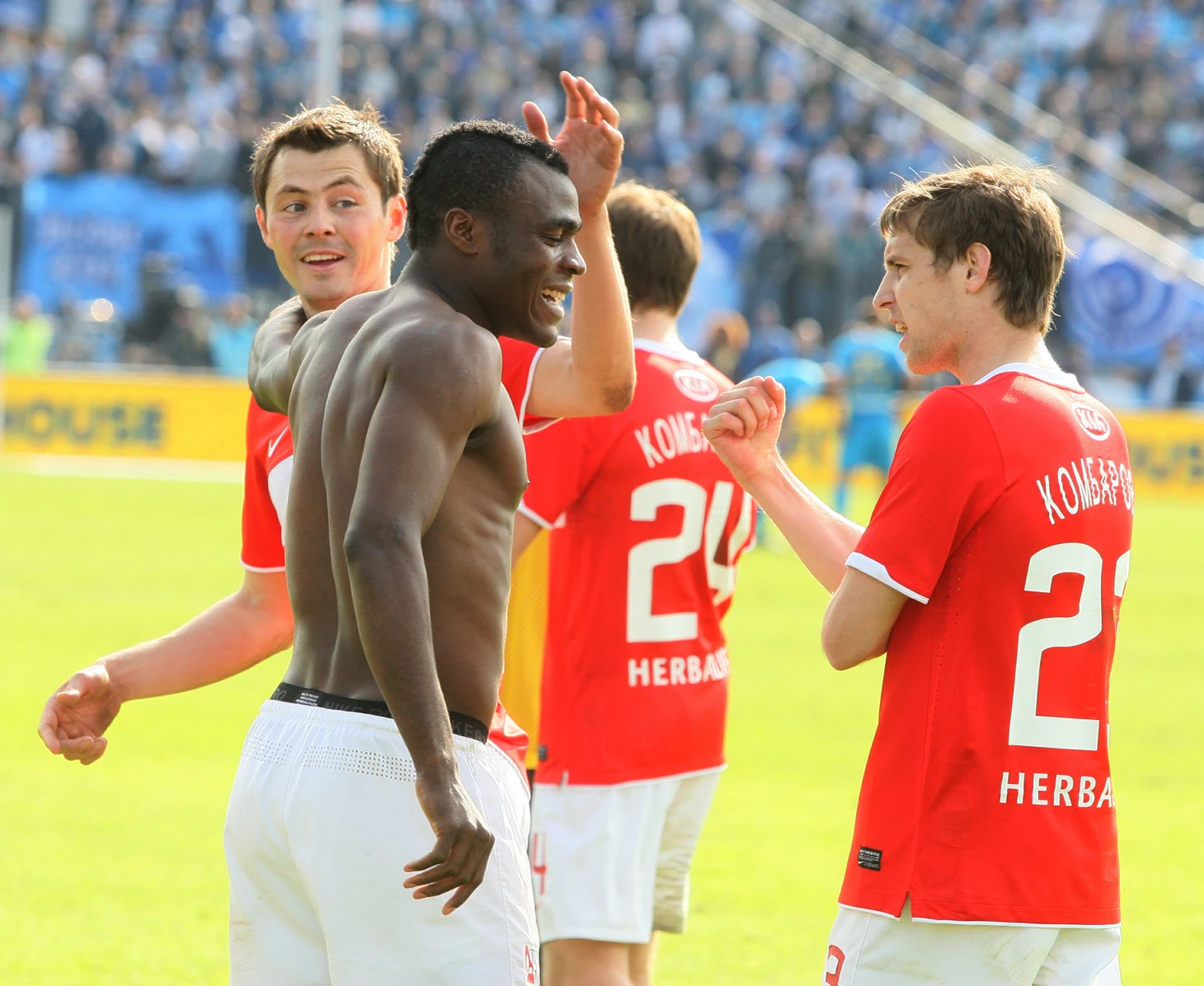 Счет сравнял Эменике, отметил гол шлепками по вене и тут же увидел перед собой красную карточку: Владимир Казьменко удалил нигерийца, посчитав, что футболист показал неприличный жест в адрес фанатов «Зенита». «Это лишь означает благодарность родителям за кровь, которая течет в моих жилах», – так прокомментировал Эменике собственное празднование.