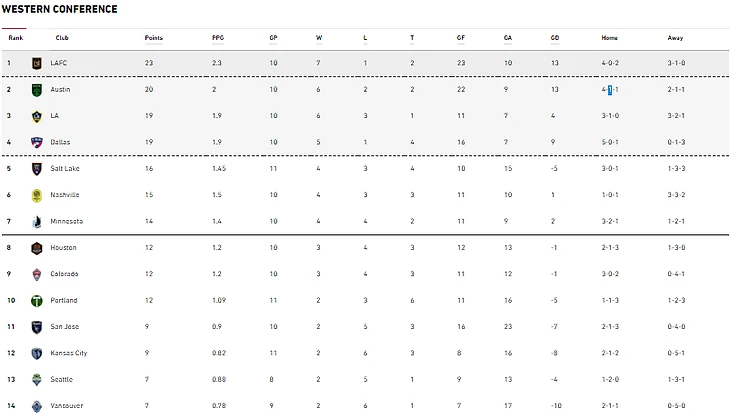 Остин, потерпев первое поражение дома, упустил шанс разделить лидерство в общем зачете с LAFC. Зато победа Гэлакси максимально уплотнила ряды трех преследователей лидера западной конференции. У Остина 20 очков, у Гэлакси и Далласа по 19.
