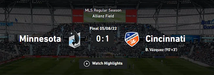 Цинциннати творит историю. Гол Васкеса на 3 добавленной минуте позволил гостям зафиксировать первую в истории клуба серию из 3 побед подряд.