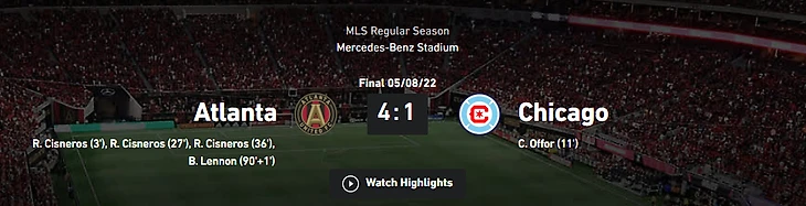 Хет-трик Сиснероса в первом тайме принес победу Атланте. Ну, а ранее крепкая оборона Чикаго с молодым одаренным вратарем куда-то исчезла.
