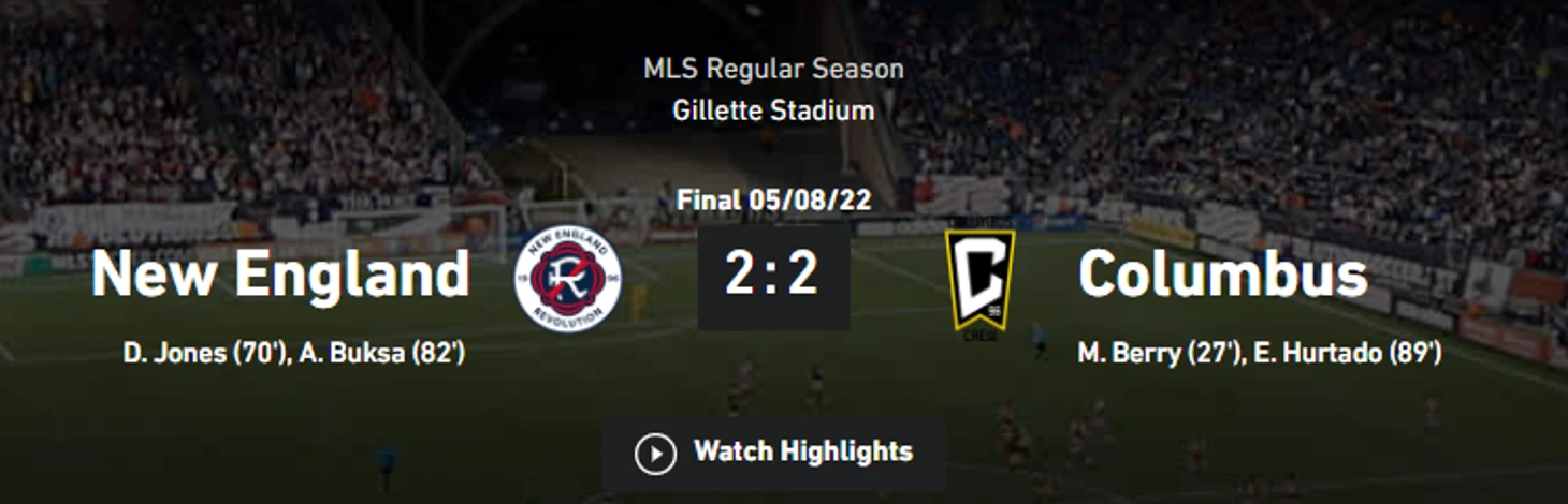 Революшн продолжают болтаться на дне, набрав 11 очков в 10 играх. А Брюса Арену ругают, что он после гола Буксы на 82 минуте перешел на игру в 4 защитника, сделав игру своей команды более оборонительной и упустил победу.