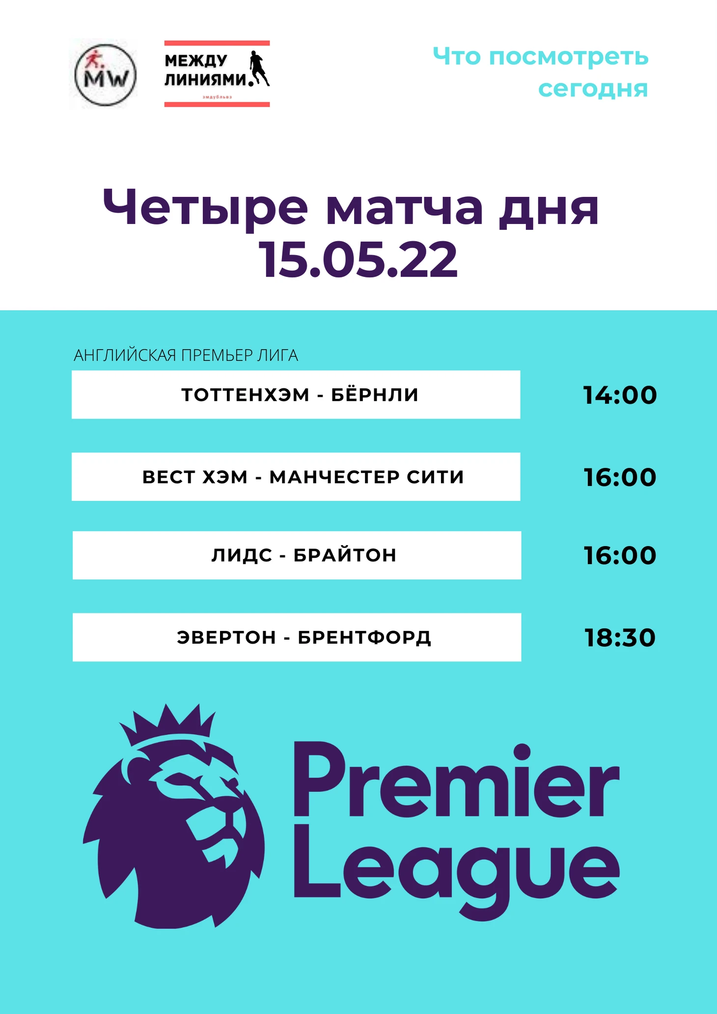 Тоттенхэм - Бёрнли Хозяева готовы потеснить Арсенал с четвертого места, а при удачном стечении матчей могут даже претендовать на бронзу. Бернли пытается уйти от зоны вылета, но рассчитывать в гостях на очки против супер мотивированного Конте будет практически невозможно. Учитывая как играют "шпоры" в своих стенах, а "бордовые" на выезде. Зато у гостей есть матч в запасе. Вест Хэм - Манчестер Сити Хозяева могут попасть в ЛЕ с шестого места и отправить Манчестер Юнайтед на 7 строчку при определенных обстоятельствах. Проблема в том, что "Сити" направляет всю энергию на победу АПЛ по понятным причинам. Маловероятно, что гости отдадут очки в гонке за чемпионство. Лидс - Брайтон Хозяева явные, но еще не 100% претенденты на вылет. Неудачная серия из трех поражений против лидеров чемпионата, огромное количество травм и дисквалификаций осложняет положение. Но отступать некуда. Брайтон небезупречен хотя и интересен своей игрой. Набранные очки не позволят попасть в еврокубки, но есть шансы подняться с 9 места на 8. Эвертон - Брентфорд Хозяева как и Бернли имеют игру в запасе и также могут обезопасить себя от вылета против гостей, которые не так прижаты к стене. Однако, Брентфорт способен даже попасть в 10 лучших при удачных стечениях обстоятельств. Хотя ожидать что конкуренты растеряют очки не приходиться, слишком уж хорошие соседи по турнирной таблице.