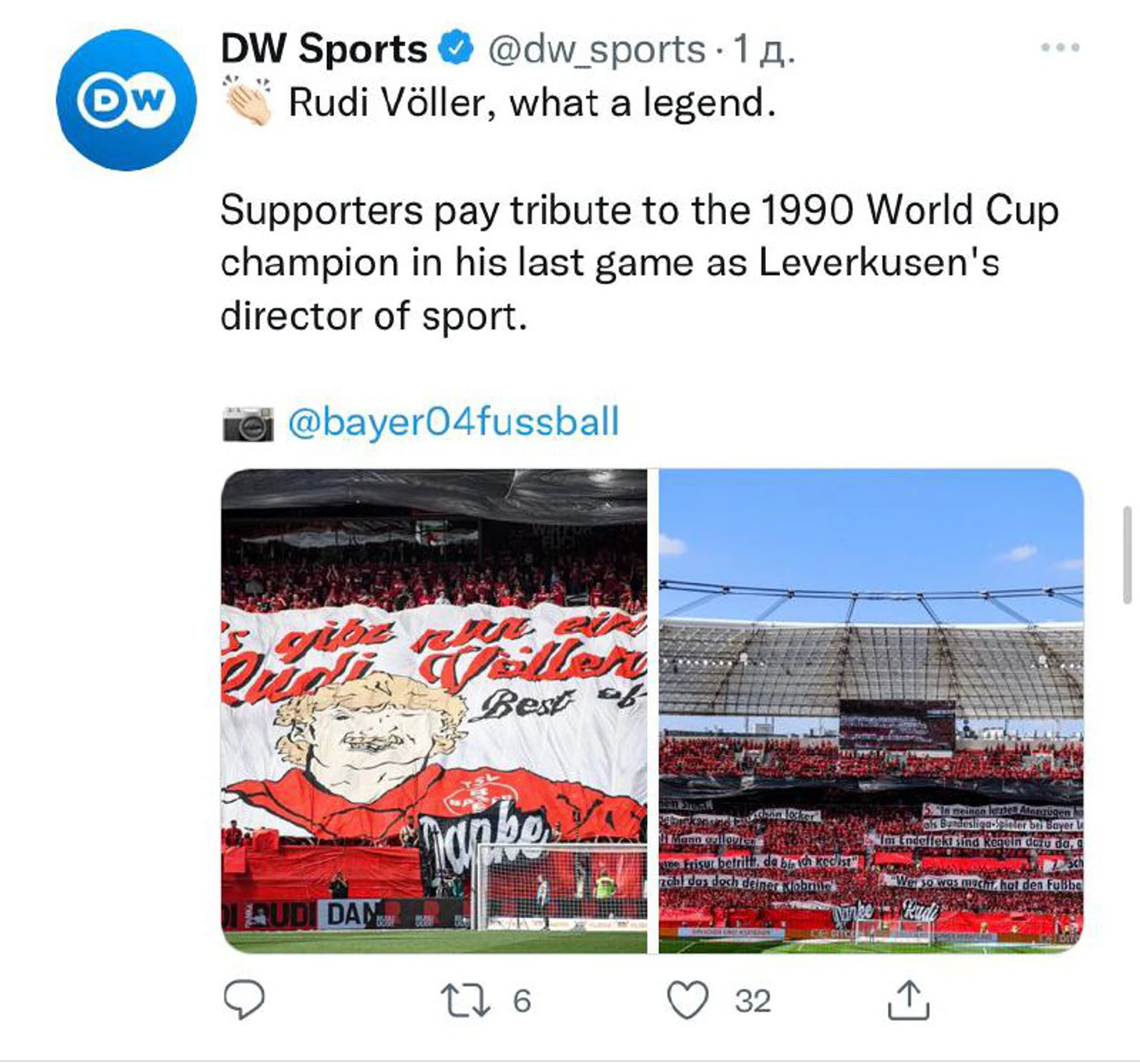Красивое прощание фанатов «Байера» с Руди Феллером, покинувшим пост спортивного директора клуба