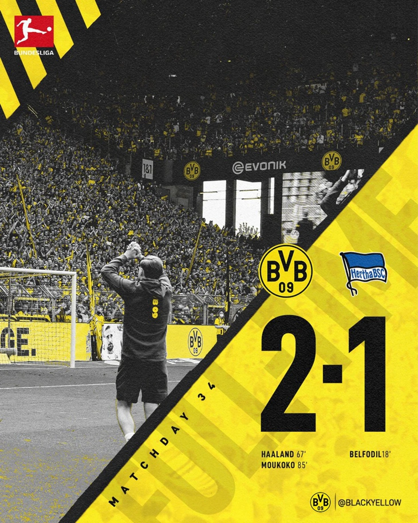 После перерыва на поле вышел юный Байно-Гиттенс, который смог освежить игру «Боруссии». Кажется, в следующем сезоне у Марко Розе будет, чем удивить соперников. Активные и смелые действия молодого полузащитника смутили берлинцев, команда начала проседать. На 65-й минуте «Боруссия» получила возможность исполнить штрафной. И хоть «шмели» не смогли успешно воспользоваться возможностью сравнять счет, после розыгрыша стандарта мяч угодил в руку футболиста «Герты», за что в ворота столичной  команды был назначен пенальти. Эрлинг Холанд в своём последнем матче на полях Бундеслиги попрощался с «Боруссией» голом с одиннадцатиметровой отметки. Пропущенный мяч деморализовал «Герту», берлинцы выпали из игры и на 84-й минуте упустили победу. Сыграла еще одна замена Марко Розе ― вышедший на поле Мукоко сильным ударом забил гол в дальний нижний угол ворот соперника.    «Боруссия» победой проводила некоторых своих футболистов, а «Герта» слишком расслабилась под конец матча, теперь берлинцам предстоит в стыковых матчах отстоять своё право на выступление в высшем дивизионе чемпионата Германии.