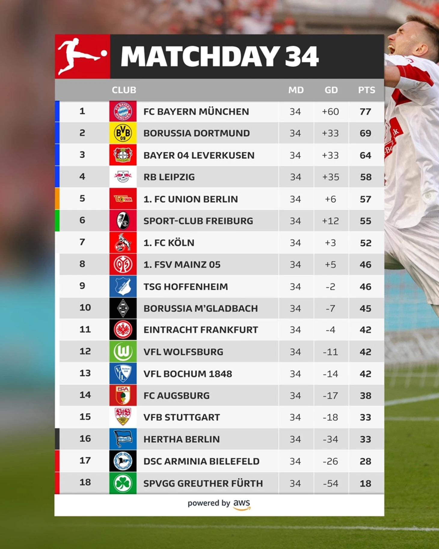 Битва за европутевки и борьба за прописку в высшем дивизионе чемпионата Германии. Обзор 34-го тура Бундеслиги