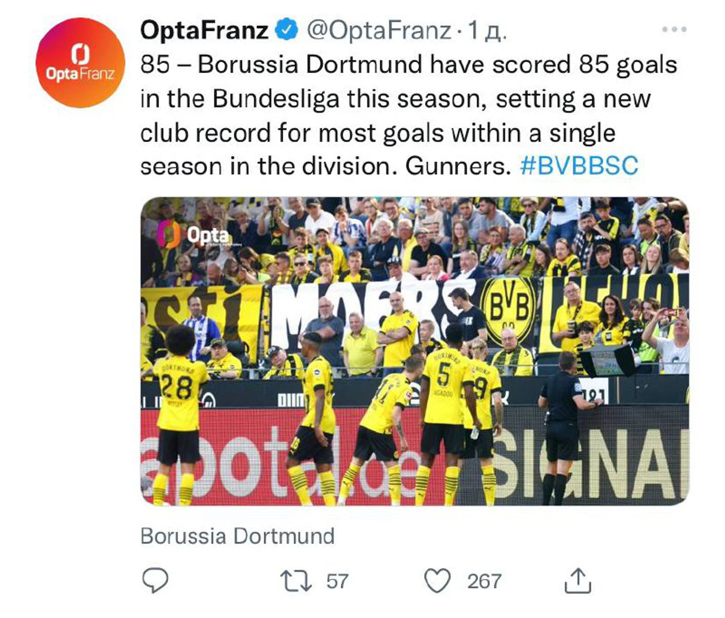 • Дортмундцы забили 85 голов. Это больше, чем в каком-либо сезоне Бундеслиги.