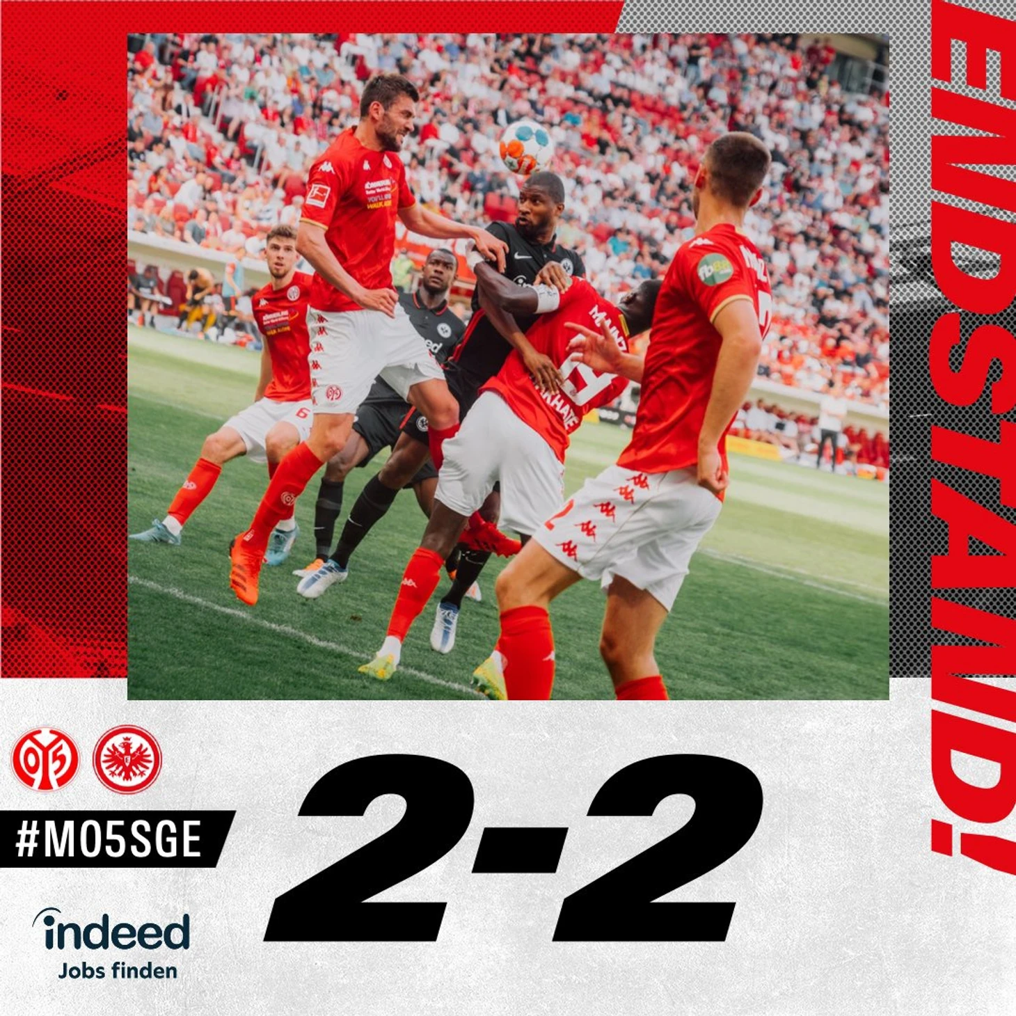 Во втором тайме «Майнц» практически сразу сравнял счет. На 49-й минуте после передачи Стаха Ингвартсен сделал дубль шикарным ударом в угол ворот Траппа, который просто-напросто оказался бессилен. У команд были еще возможности отличиться. И «Майнц», и «Айнтрахт» смогли доставить мяч в ворота соперника, но оба гола были отменены. Команды разошлись, согласившись на результативную ничью.