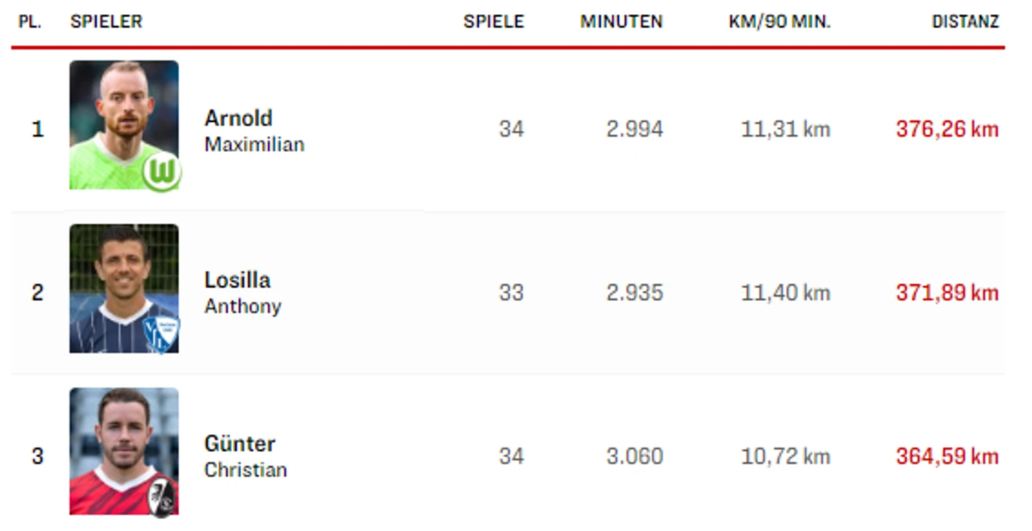 *игрок – кол-во игр – кол-во минут – в среднем км за 90 мин – всего км