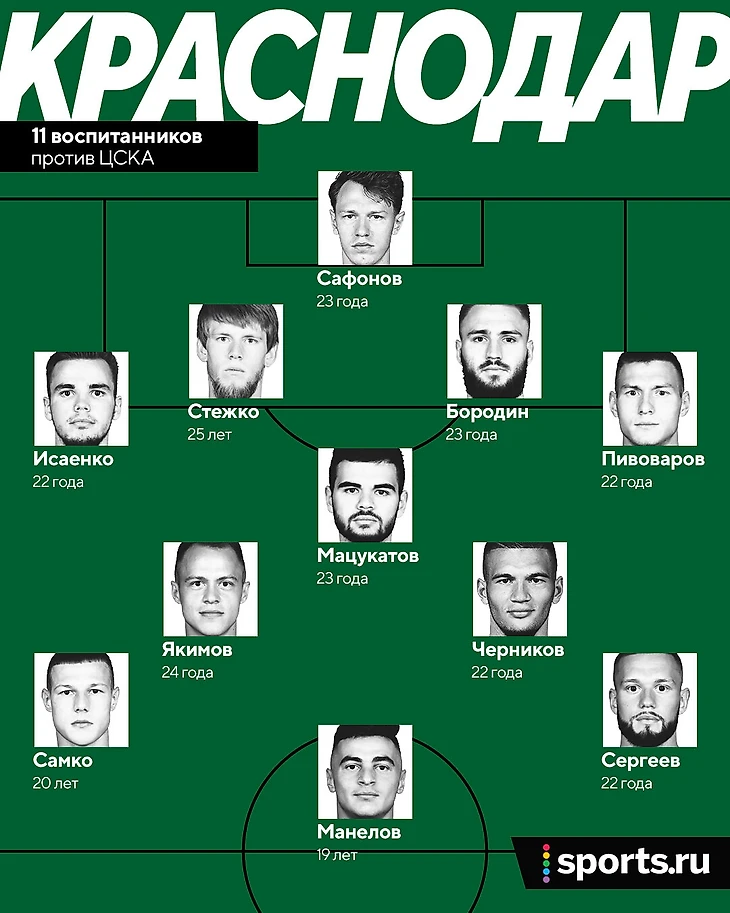 Есть гораздо символичнее – «Краснодар» закончил игру с 11 воспитанниками на поле. Одновременно!
