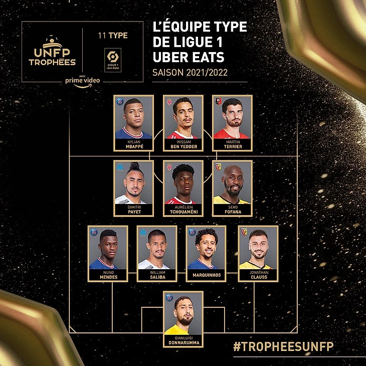 В символическую сборную сезона вошли игроки "Монако", "Ренна", "Ланса", ПСЖ и "Марселя": Джанлуиджи Доннарумма, Нуно Мендеш, Вильям Салиба, Маркиньос, Жонатан Клосс, Димитри Пайет, Орельен Тшуамени, Секо Фофана, Килиан Мбаппе, Виссам Бен Йеддер и Мартен Террье. Тут вопросов почти нет... Сомнения лишь вызывают позиции вратаря и левого защитника.