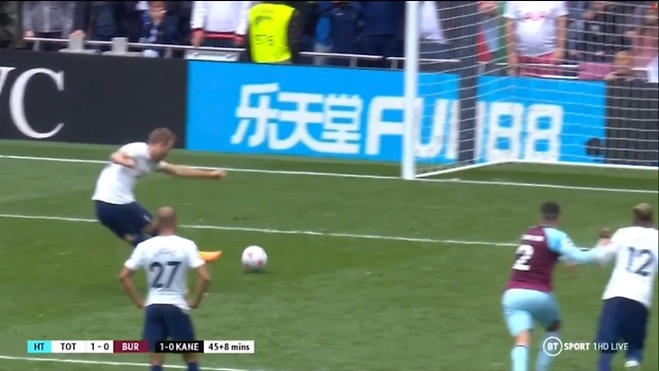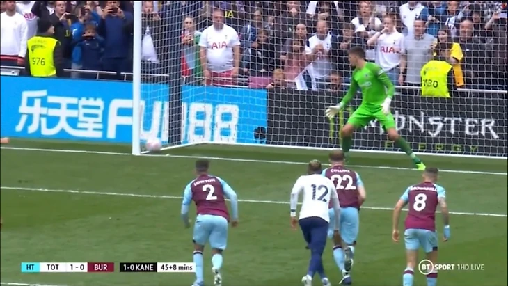 Уже под самый конец первого тайма Кейн реализовал пенальти, поставленный после попадания мяча в руку Лоутону.