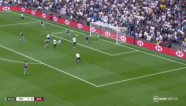 На 79 минуте Конте поменял Моуру на Кулусевского. Затем Поуп сотворил что-то невероятное, а именно сейв плечом! На 81 минуте после прострела Сессеньона Сон пробил с разворота, но голкипер Бёрнли мастерски справился с этим ударом, не используя перчаток!