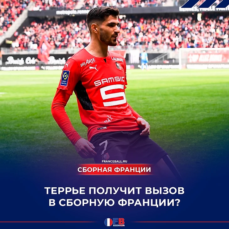 По информации RMC, нападающий "Ренна" Мартен Террье, а также его одноклубник Бенжамен Бурижо входят в расширенный список игроков, предварительно выбранных Дидье Дешамом на ближайший сбор сборной Франции.