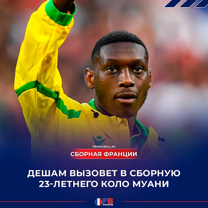 Ранее стало известно, что на июньские матчи будет приглашён нападающий "Нанта" Рандала Коло Муани. В этом сезоне 23-летний француз забил 12 голов и сделал 5 голевых передач в 34 матчах Лиги 1.