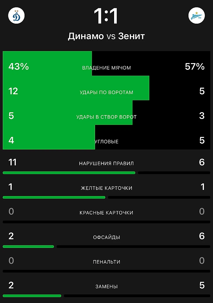«Динамо»-«Зенит» 1-1, «Зенит» отвратительно провёл ту игру, после гола Клаудиньо они откровенно бросили играть, «Динамо» весь 2-ой тайм смотрелся увереннее, стабильнее, в результате чего смогло сравнять счёт в матче Где чуть-чуть не хватило для победы, конечно мы хотели увидеть игру интереснее и свежее, но вышло как всегда, но зато, у нас есть другие матчи которые прямо сейчас мы попробуем рассмотреть