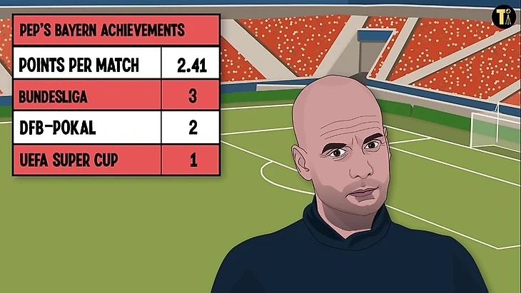 Когда Пеп переехал в Германию, "Бавария" играла 4-2-3-1, но Гвардиола поменял схему на более знакомую 4-4-2, трансформирующуюся в 4-1-4-1. То, что Гвардиола сделал с "Баварией", было предопределено изменением качеств роли крайних защитников, внедрением ложной девятки, подобной Месси в "Барселоне", но основное изменение всё таки было в защитной линии, особое внимание уделено игре в переходных стадиях, так как в Германии многие команды умело используют контратаки.