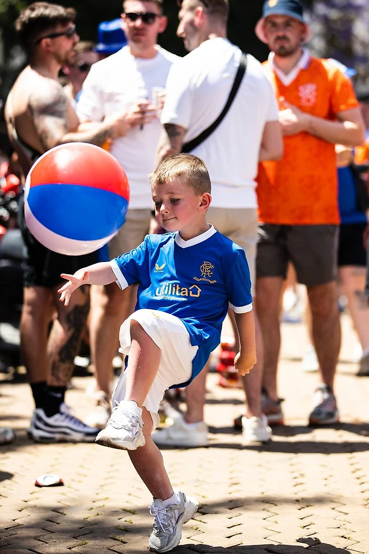 У «Айнтрахта» сцена с музыкой, традиционным президентом Петером Фишером, поднимающим пивко за здоровье фанатов. «Рейнджерс» просто безумно много. Годы идут, а с Острова на континент так и валят подвыпившие толпы. Правда, теперь они не вызывают панику и ужас.