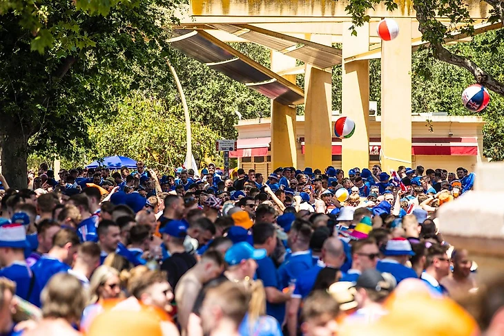 Первую половину дня все на позитиве и без агрессии, позже появились видео со стычками: шотландцы попробовали атаковать немцев.