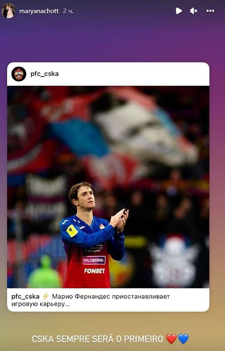 Сегодня ЦСКА и Марио объявили о том, что после матча с "Ростовом" футболист отправится в Бразилию, а его контракт с ЦСКА будет приостановлен. "ЦСКА всегда будет первым! Навсегда в наших сердцах", - написала Марианна, которая на большинстве матчей поддерживала Марио и ЦСКА на трибуне. Напомним, в 2022 году пара ожидает рождение сына.