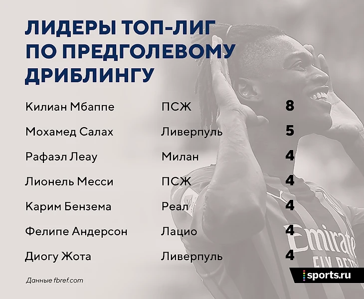 Так Леау реализовал хотя бы часть феноменального дарования. Сейчас он входит в десятку лучших дриблеров топ-лиг с 3,3 обводки за 90 минут. Из игроков, проведших больше 1500 минут, выше всего трое – Сен-Максимен, Буфаль и Альфонсо Дэвис. Еще больше впечатляет эффективность его обводок. При всей поразительной непринужденности Леау – не просто трикстер. У обыгрышей всегда есть цель. Он входит в тройку лучших игроков Европы по обводкам, приведшим к голам.