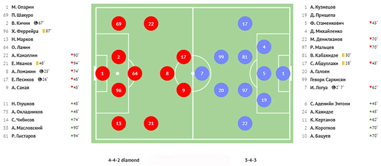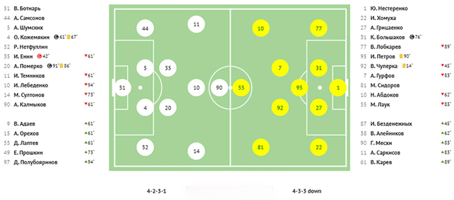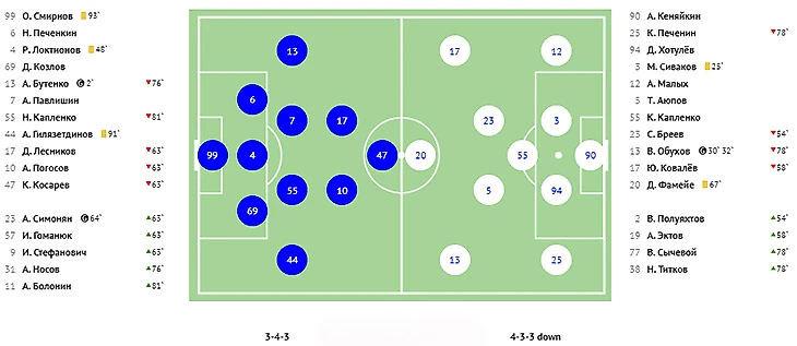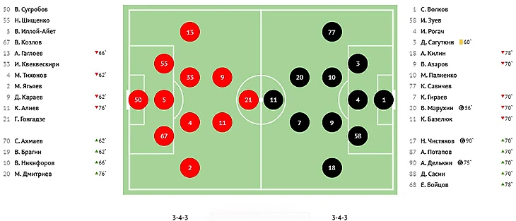 Голы: Марухин, 57 (0:1). Делькин, 76 - с пенальти (0:2). Чистяков, 90 (0:3).