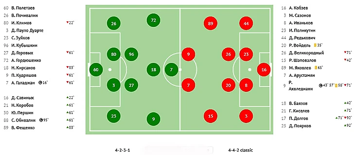 Первый тайм был абсолютно равный, но чувствовалось, что класс исполнителей «Ротора» выше. Это и принесло волгоградцам преимущество в счёте. Кипиани на дриблинге проскочил мимо соперников слева, подал на дальний край штрафной, и Чуканов спокойно пробил в пустой угол.