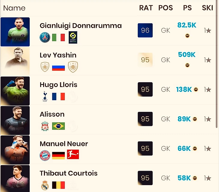 Несмотря на то что, по соседству с Яшиным находятся Lloris, Alisson, Neuer и Courtois, это особые карточки, полученные за попадание в команду сезона. А Donnarumma вовсе имеет рейтинг выше, но уже за команду года. А по стоимости Лев Иванович уступает только легенде Манчестер Юнайтед, но это связано скорее, с его невероятной моделькой в игре и читерскими спасениями.
