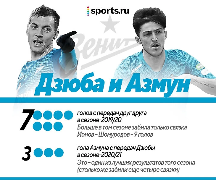 «Азмун может играть с Дзюбой и Дриусси. Дриусси может играть на нескольких позициях, качества Азмуна и Дзюбы тоже позволяют увидеть их на поле вместе. В «Зените» Азмуну не придется менять роль. У него прекрасные открывания, он чувствует момент, когда нужно оторваться от защитника. Даже если Сердар будет играть в паре с Дзюбой, у него не должно возникнуть никаких проблем», – объяснял Семак в интервью Sports.ru в феврале 2019-го.