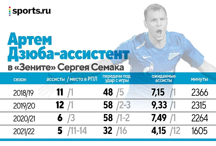 В 30 лет Дзюба раскрылся как ассистент – и действительно получал огромное удовольствие от новой роли. Артему даже удалось стать первым игроком в истории РПЛ, выигравшим ассистентскую гонку два сезона подряд.