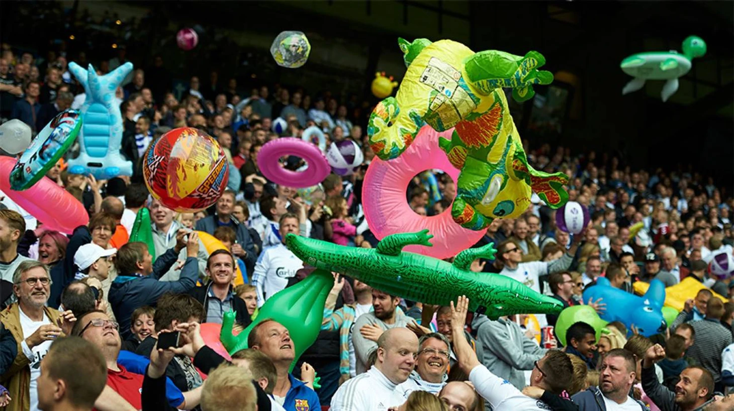 На самом деле, это довольно давняя традиция фанатов «Копенгагена» – ей уже 18 лет. На 14-й минуте каждого последнего домашнего матча сезона болельщики достают надувные игрушки – и ненадолго устраивают веселое безумие.