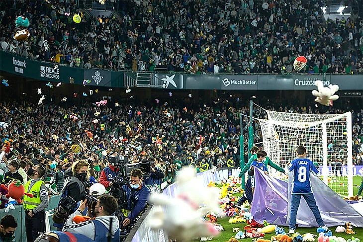 Фанаты «Бетиса» бросили на поле 19 тысяч мягких игрушек. Очень эффектная и добрая акция