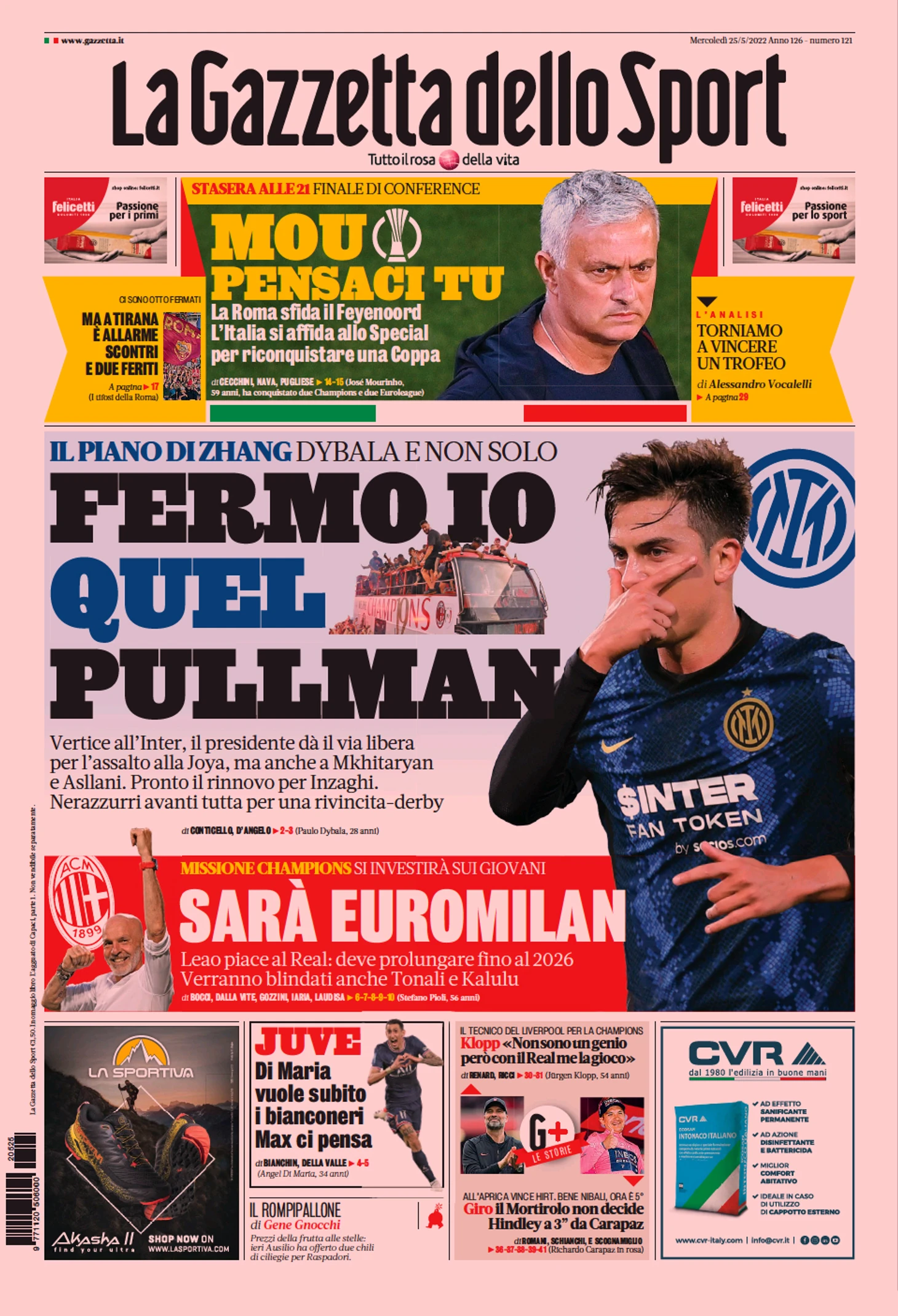 Сегодняшний финал Лиги Конференций с участием «Ромы», трансферные планы «Интера», а также поиск «Ювентусом» защитника – в обзоре заголовков итальянских спортивных изданий в блоге «В гостях у Кальчо».