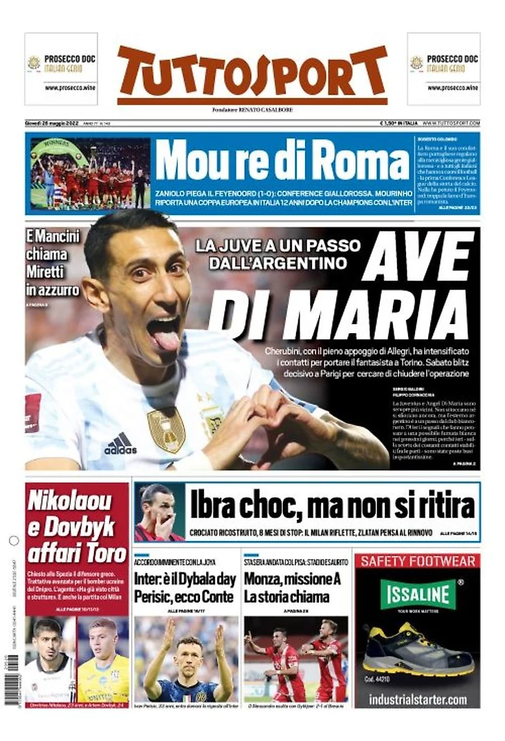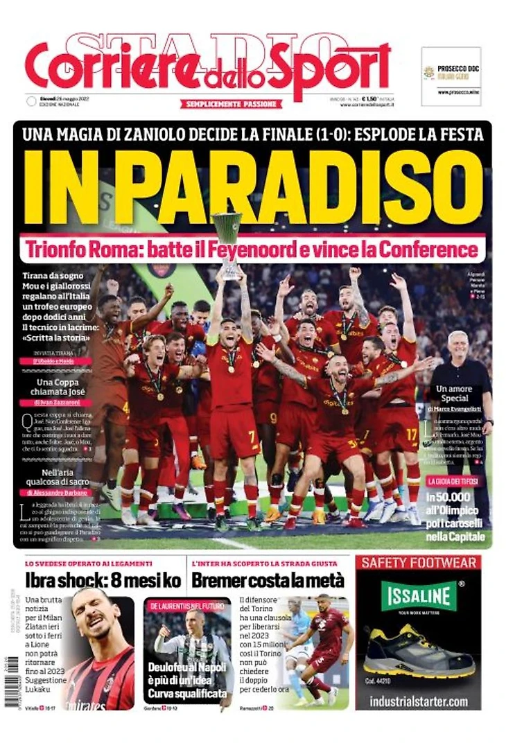 Победа «Ромы» в Лиге Конференций, операция Златана, переговоры «Юве» по Ди Марии, а также трансферные планы «Интера» – в обзоре заголовков итальянских спортивных изданий в блоге «В гостях у Кальчо».