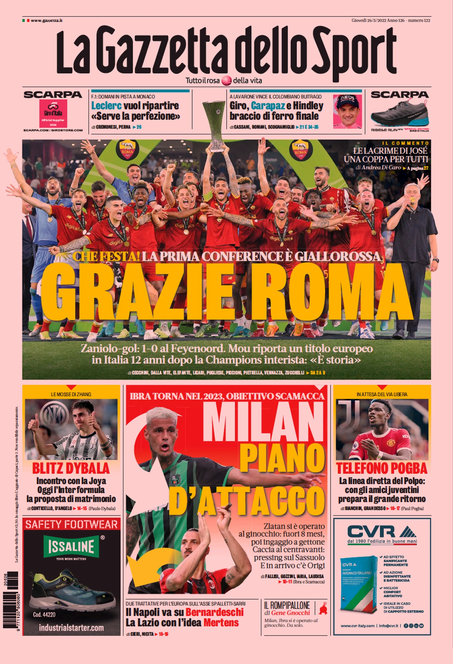 В Раю. Заголовки Gazzetta, TuttoSport и Corriere за 26 мая