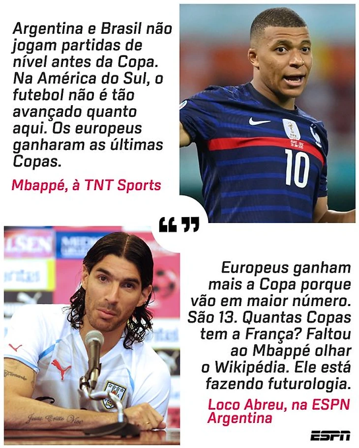 Даже вечный уругвайский "цыган" Локо Абреу не остался в стороне и потроллил молодого француза. "Сколько мировых титулов у Франции? А сколько европейских титулов? Не пятнадцать, верно? Уругвай выиграл два чемпионата мира и пятнадцать Кубков Америки, у Мбаппе, видимо, нет Википедии. А то, что они играют только с европейцами в Лиге Наций, не означает, что эти соперники высокого уровня…»