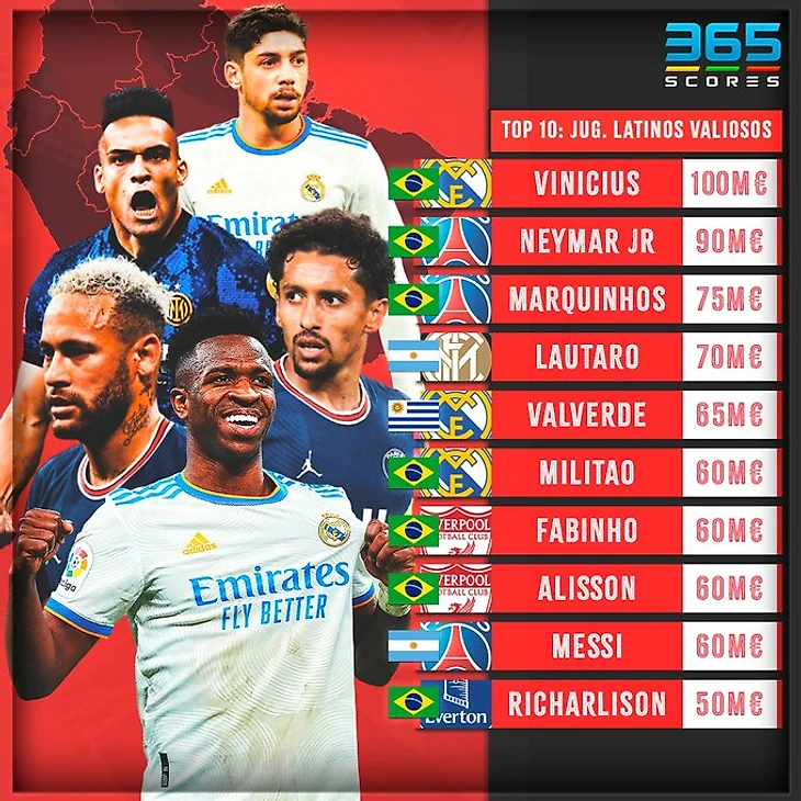 С одной стороны латиноамериканцы и бразильцы в частности в топе по рыночной стоимости.