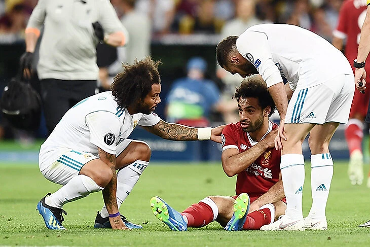 На 26-й минуте матча с «Ливерпулем» Рамос и Салах взлетели над стадионом «Олимпийского», рука Салаха попала в захват Рамоса, испанец упал и утянул египтянина за собой. Судья Милорад Мажич даже не свистнул, Мохамед получил травму плеча и через несколько минут в слезах покинул поле.