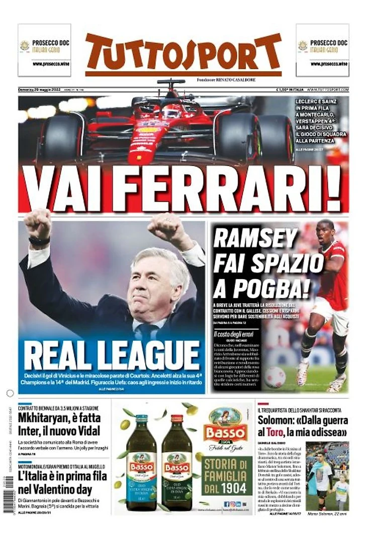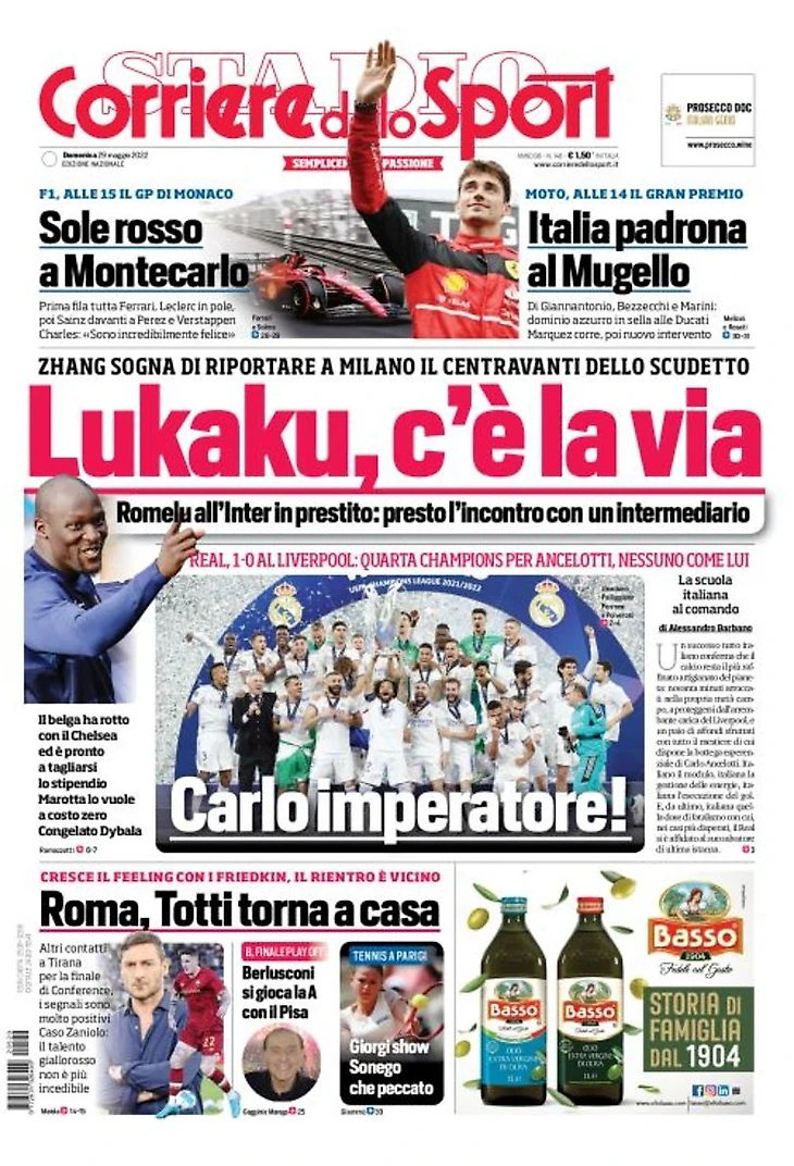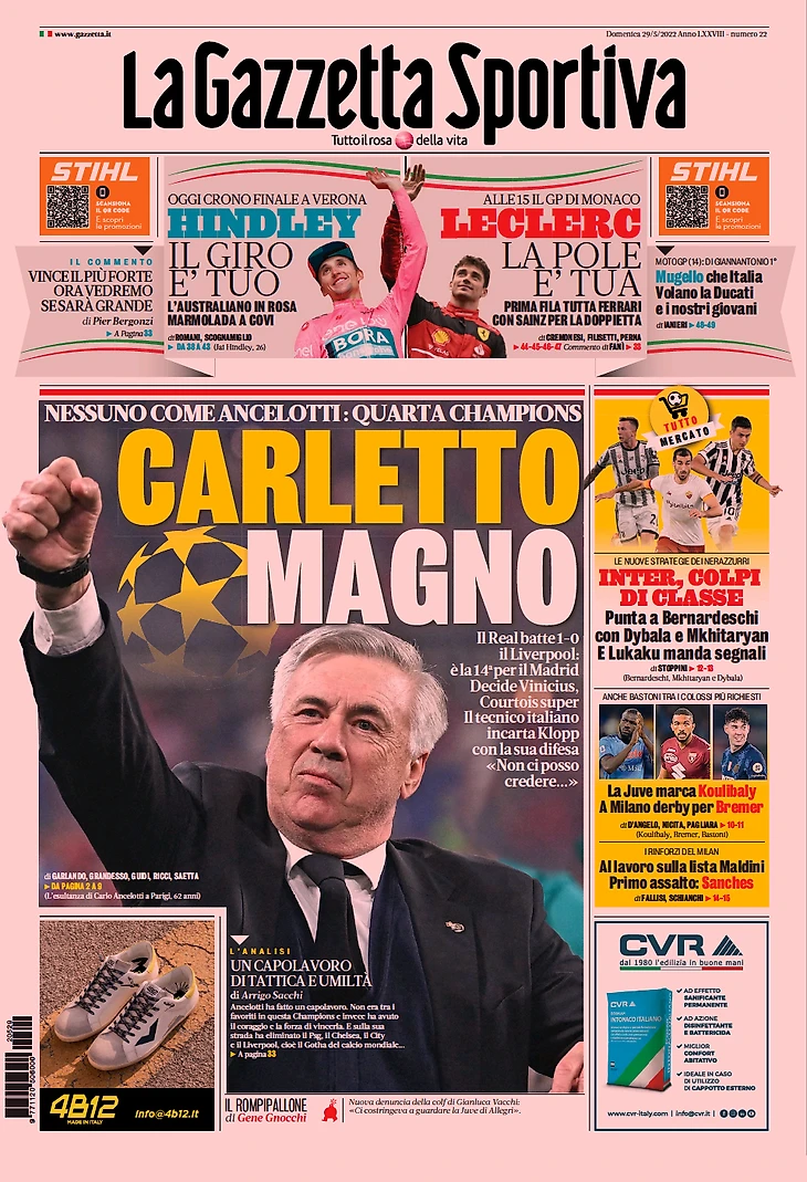 Карлетто Великий. Заголовки Gazzetta, TuttoSport и Corriere за 29 мая