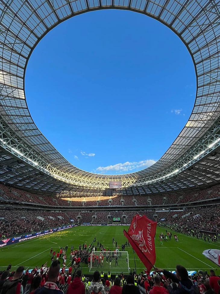Дождались всех ребят, зашли на сектор… и тут уже получили шквал эмоций, от вида, который тебе преподносят «Лужники», они с одной стороны кажутся огромными, но поле в тоже время кажется маленьким, и находится будто совсем рядом.