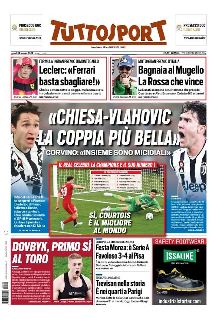 Корвино: «Вместе они смертельны». Спортивный директор «Лечче», который открыл их во Флоренции: «Федерико рядом или позади Душана, это атомная атака». Два бомбардира вместе на Гран-При Монтекарло. «Юве» готов к закрытию сделки по Ди Марии.